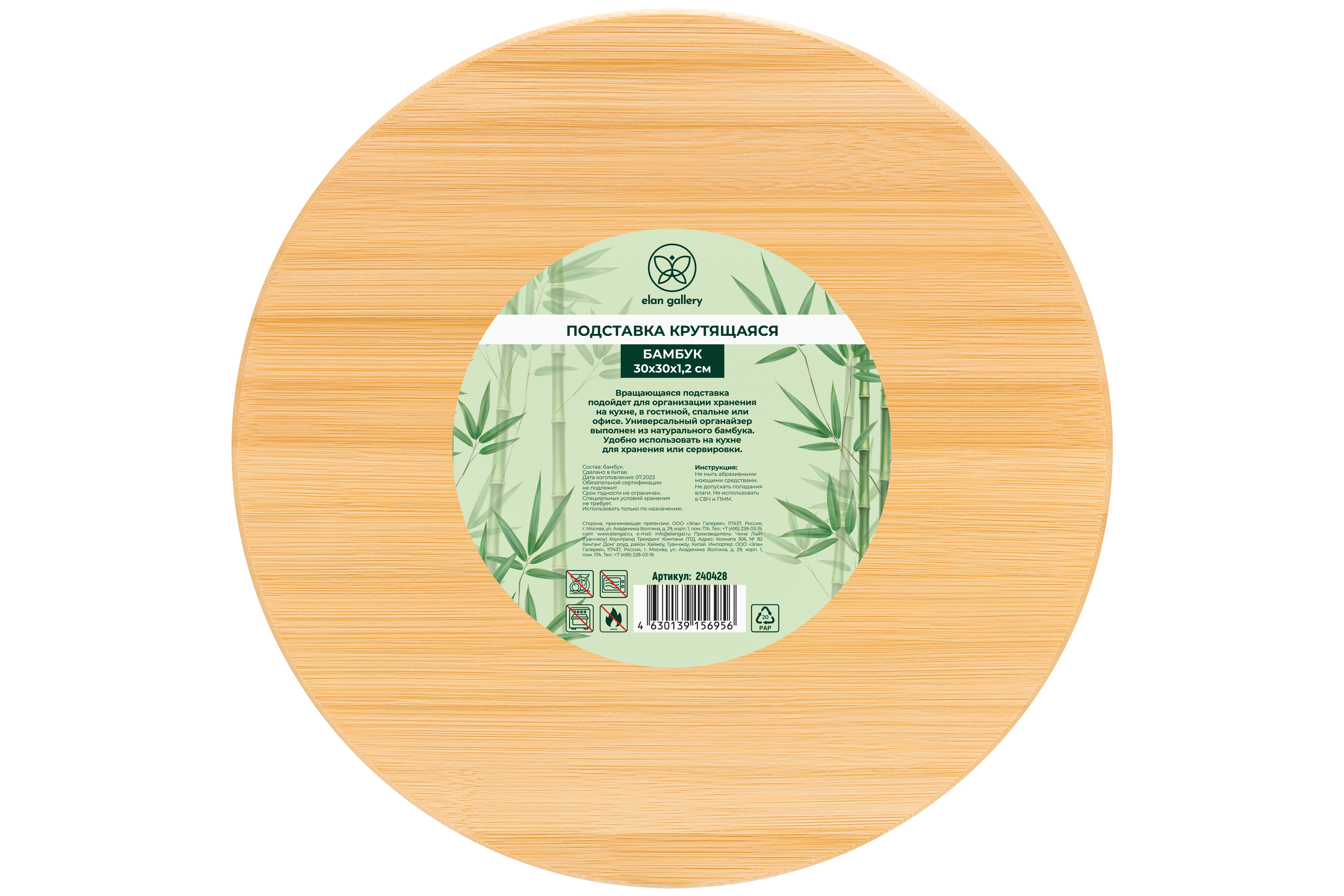 Цена на Подставка Elan Gallery бамбуковая крутящаяся 30х30х1.2 см - 1495 ₽.