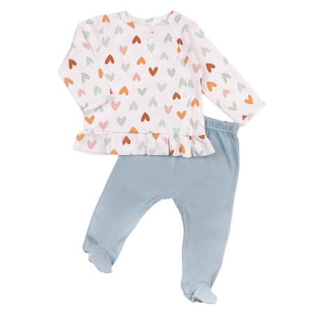Костюм для малыша состоит из кофточки и штанишек для девочек. Комплект пошит из 100% хлопка-интерлок. Материал мягкий и легкий, не раздражает нежную кожу ребенка и хорошо вентилируется. Эластичные швы приятны телу младенца и не препятствуют его движениям. Кофточка для малыша с длинным рукавом, мягкой обработкой горловины и удобной застёжкой по всей длине.