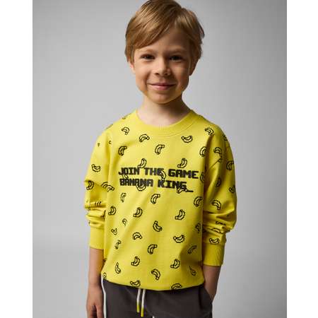 Жёлтый свитшот для мальчика Futurino с принтом в стиле компьютерных игр.