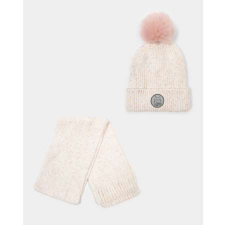 Зимний комплект для девочки Futurino из шарфа и шапки с помпоном из искусственного меха.