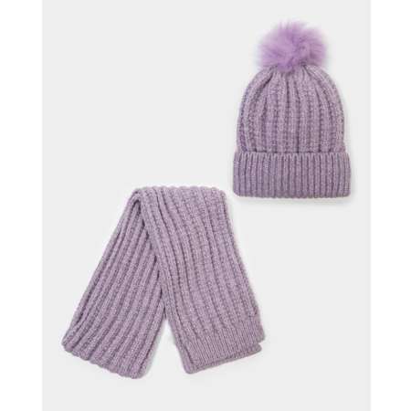 Зимний комплект для девочки Futurino из шарфа и шапки с помпоном из искусственного меха.