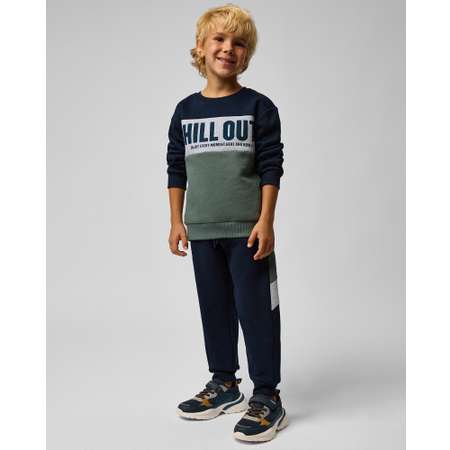 Тёмно-синий спортивный костюм для мальчика Futurino из свитшота с цветными вставками, а также брюк с лампасами.