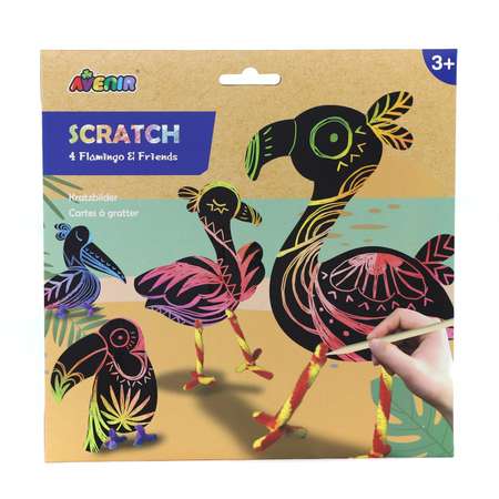 Набор для творчества с цветными гравюрами ФЛАМИНГО от бренда AVENIR позволит ребенку познакомиться с уникальной техникой рисования Scratch Art.