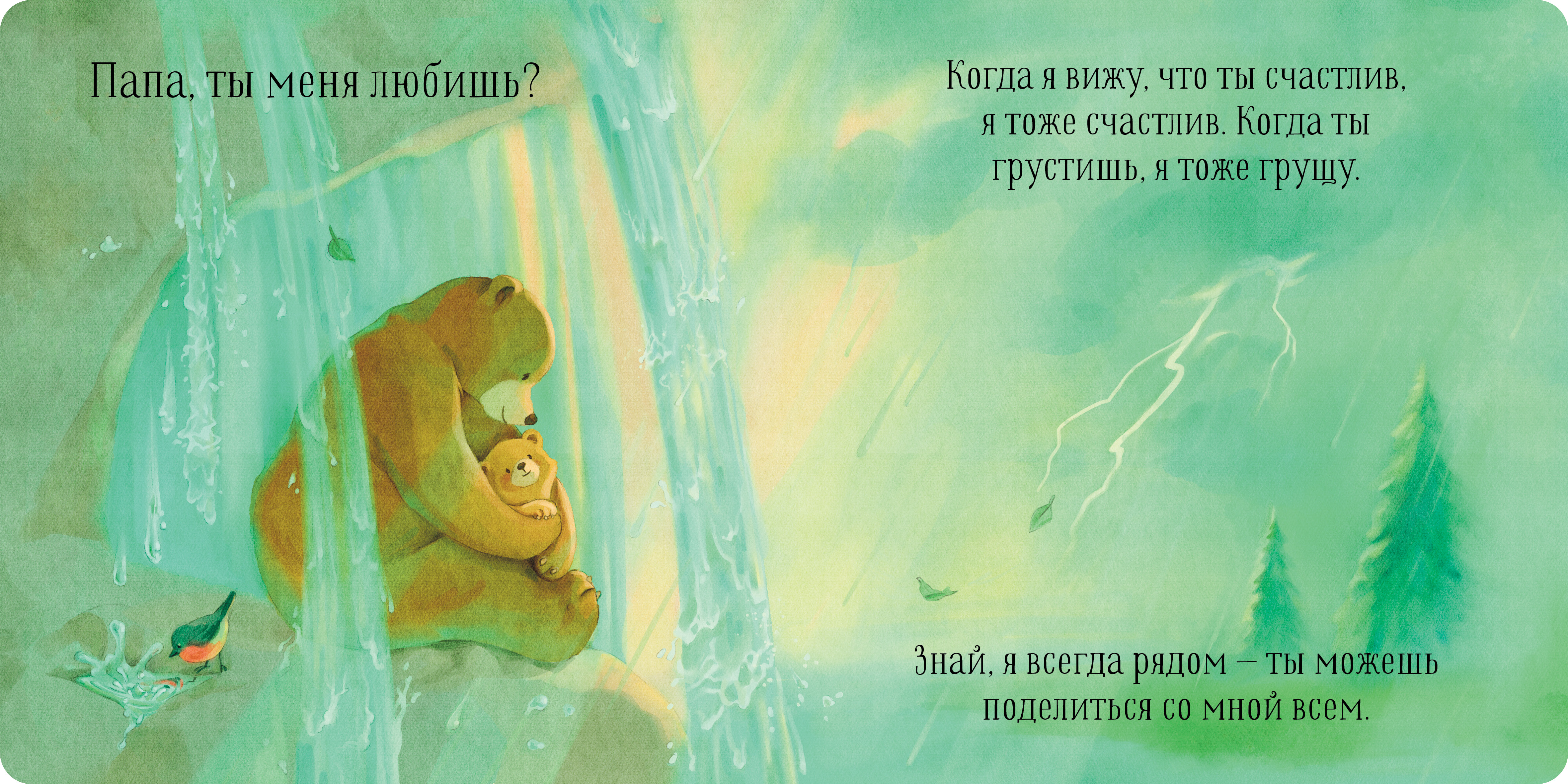 «Папа, ты меня любишь?» - спрашивал медвежонок у папы, играя с ним в догонялки. «Любишь?» - говорил малыш, глядя с папой на яркие звёзды. И всегда слышал ответ: «Я люблю тебя больше всего на свете». Потому что папина любовь бесконечна!