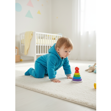 Комбинезон флисовый для мальчика — тёплый ясельный комбинезон на кнопках с капюшоном и закрытыми стопами, идеально подходящий для осени, зимы и весны как для дома, так и как дополнительный слой под верхнюю одежду.