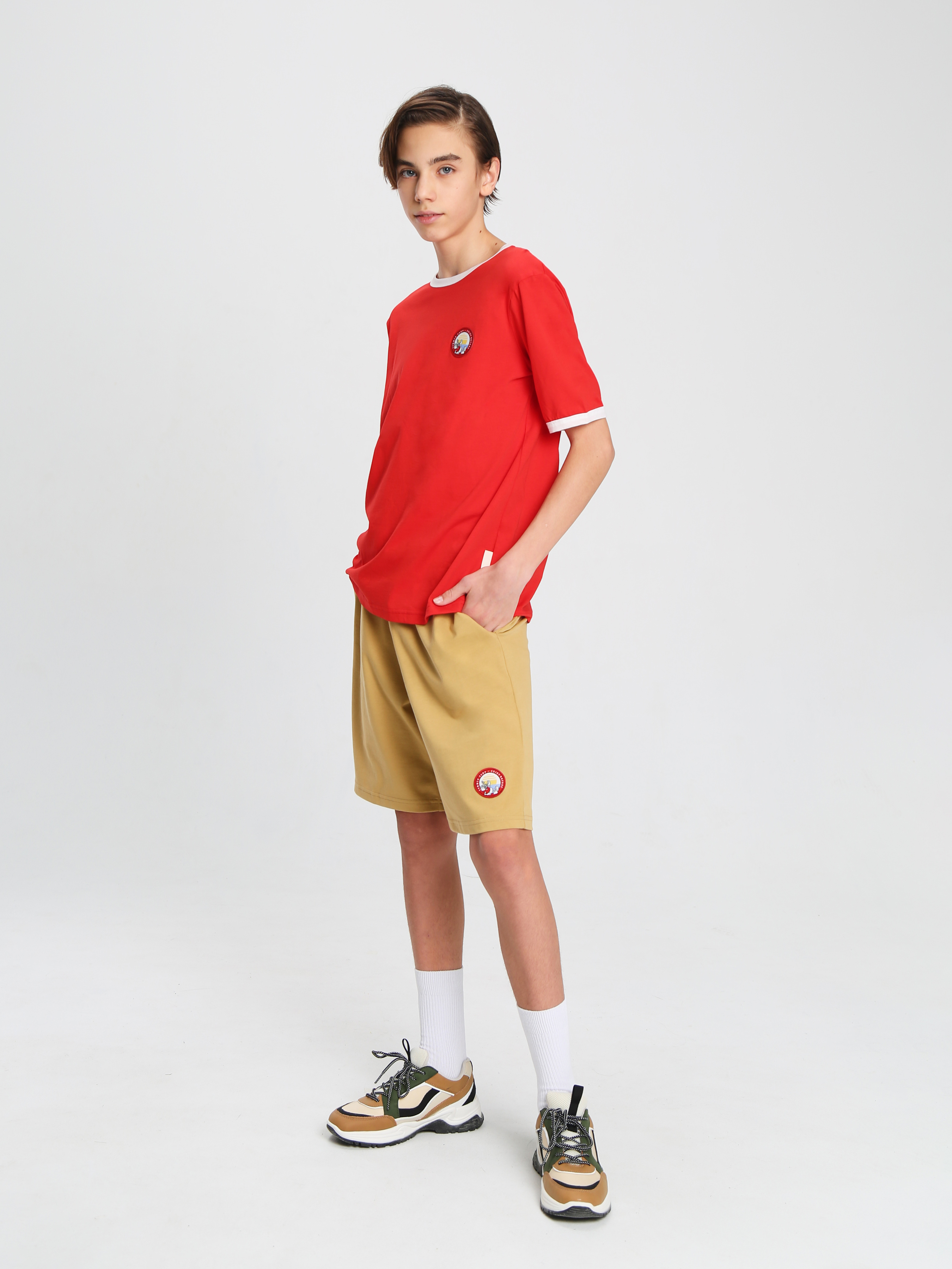 Летние шорты для мальчика на резинке SMENA, выполнены из качественного трикотажа, благодаря которому они мягкие и приятные на ощупь. Шорты для мальчиков хорошо тянутся, не сковывают движений и легко возвращается к своей первоначальной форме. Шорты детские дополнены стильным ассиметричным задним карманом и небольшим текстовым принтом спереди. Талия выполнена на резинке, а для дополнительной регулировки предусмотрен шнурок.