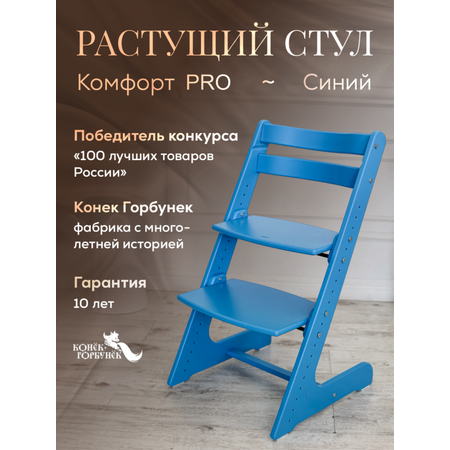 Растущий стул Комфорт PRO— современный регулируемый стул для детей от 6 месяцев до 18 лет. Он заменяет сразу несколько товаров: стульчик для кормления, первый рабочий стул ребёнка, стул для занятий и учебы. Благодаря регулировке сиденья и подножки стул легко подстраивается под рост и анатомию ребёнка, обеспечивая ортопедическую посадку с ровной осанкой и углом ног 90°.