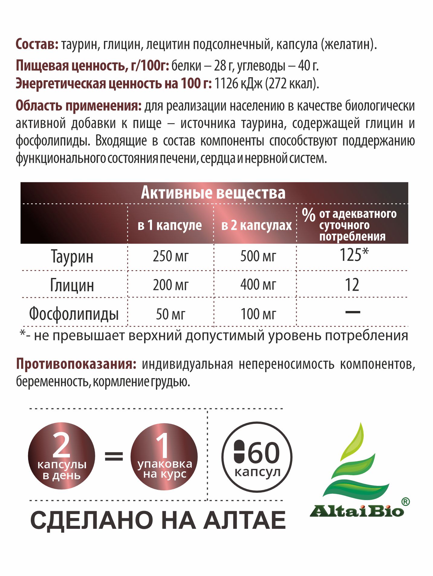 С «Комплексом Таурин Глицин Лецитин» вы выбираете сертифицированное качество и природную силу Алтая! Добавьте этот продукт в свою жизнь, и пусть каждый день вдохновляет вас на новые достижения!