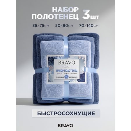 Полотенце BRAVO Сванк 35*75+50*90+70*140 синий 3 шт.