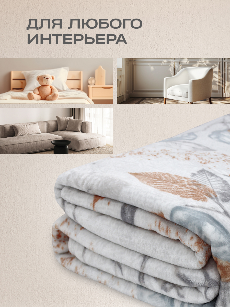 Цена на Плед Happy Family Листья 150 x 200 см велсофт - 1410 ₽.