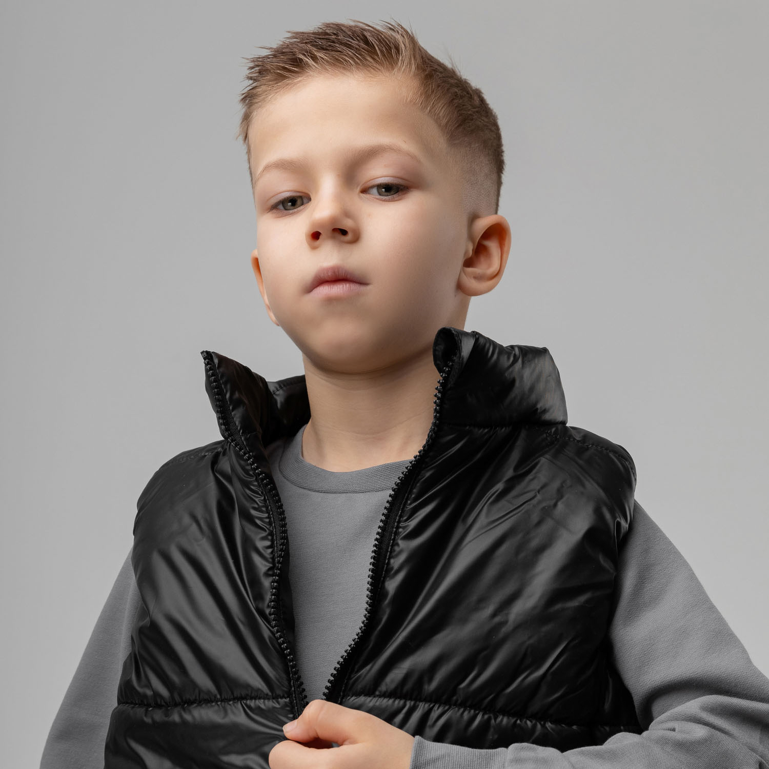 Жилет на молнии, по бокам карманы, с воротником-стойкой, без капюшона. Идеальный верхний слой в прохладную погоду, который одновременно согреет ребенка и не даст вспотеть. Жилет отличается стильным силуэтом и актуальным дизайном, помогает сделать модным любой образ. Отлично сочетается с трикотажными костюмами, свитерами, либо с верхней одеждой. Жилетка актуальна для сезона весна/осень, а также подойдет для прохладного лета. Материал жилета FITSYSTEM имеет специальное водонепроницаемое и водоотталкивающее покрытие и пропитку, защищает от дождя, влаги и ветра.