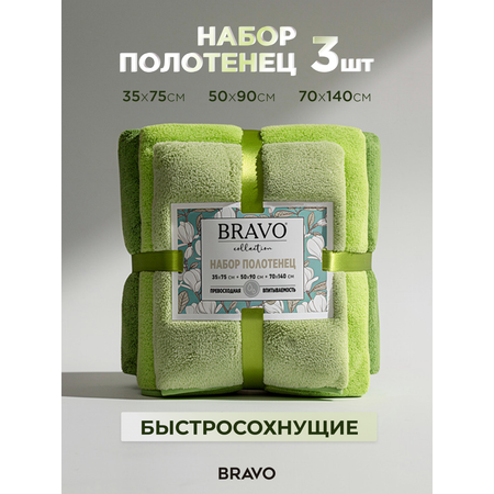 Полотенце BRAVO Сванк 35х75+50х90+70х140 зел 3 шт.