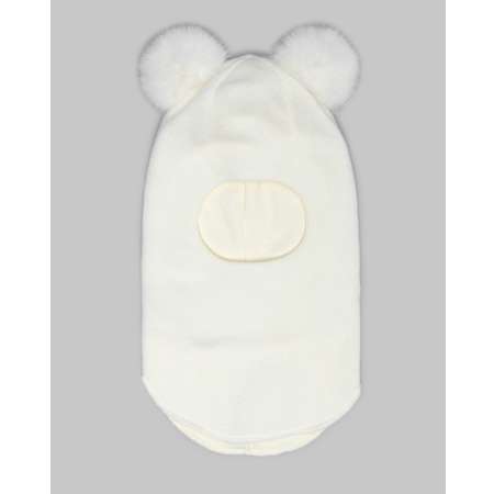 Утеплённая шапка-шлем для девочки Futurino молочного цвета, с помпонами из искусственного меха.