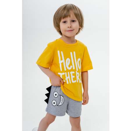 Комплект летний для мальчика состоит из футболки с аппликацией и шорт. Пояс шорт на резинке.