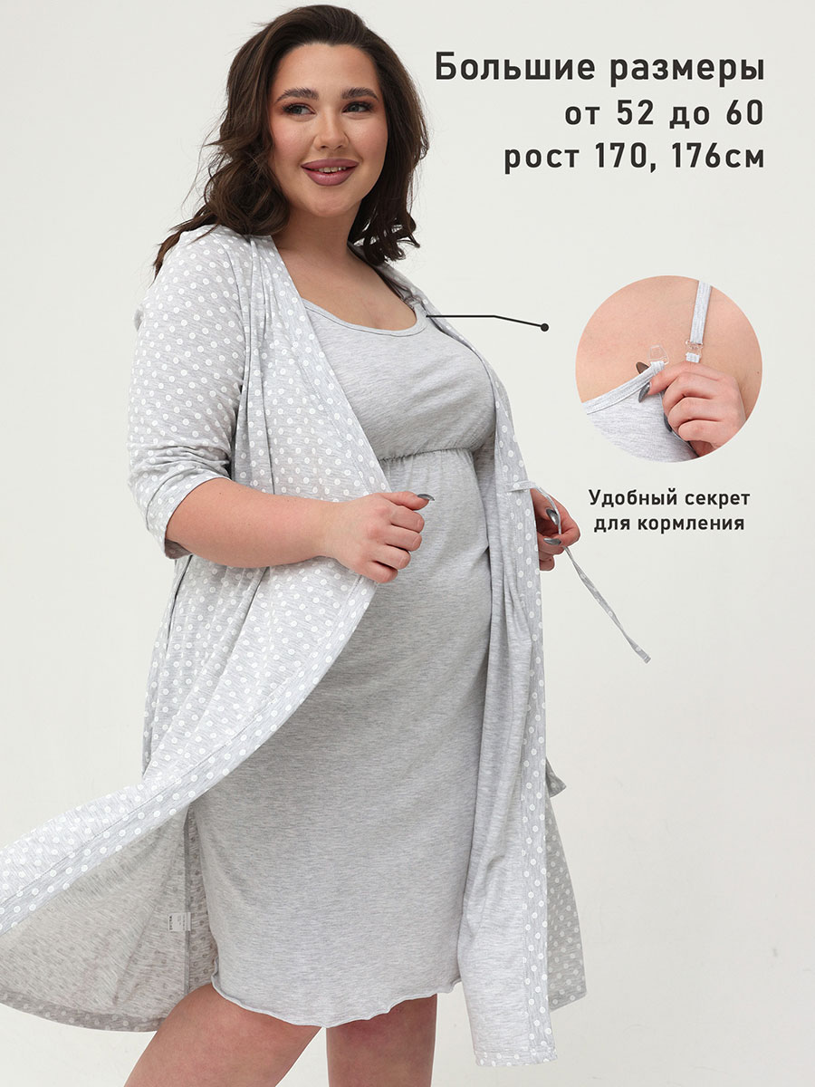 Комплект для беременных большие размеры. Халат с поясом и ночная сорочка из хлопка - удобная домашняя одежда для беременных и кормящих женщин. Ночная рубашка для кормящих удобна для мамы, так как бретель отстегивается для кормления малыша. Комплект халат и ночная сорочка подойдет для роддома. Домашний комплект для кормления обеспечивает максимальный комфорт и позволит будущей маме выглядеть стильно в любом месте.