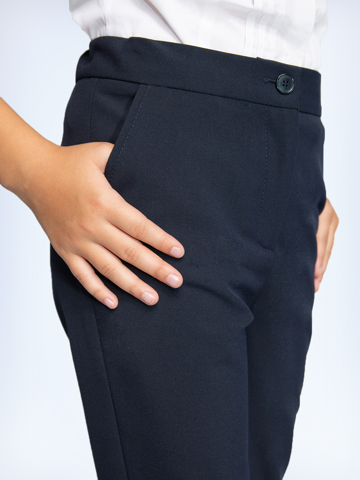 Стильные зауженные брюки-дудочки из костюмной поливискозы средней плотности станут отличным выбором для школы и повседневного гардероба юной модницы! Они прекрасно сочетаются с любым классическим верхом из школьной формы, создавая современный, элегантный комплект. На лицевой стороне расположены боковые функциональные карманы. Спереди изделие застегивается на молнию и пуговицу. Внутренняя регулировка пояса позволяет скорректировать посадку по талии и сделать ее более комфортной. Брюки отлично подойдут на разные случаи, в качестве повседневной и нарядной одежды. Школьные деловые штаны для девочки универсальная вещь в гардеробе Вашего ребенка. Костюмный материал полностью соответствует ГОСТ и имеет все сертификаты соответствия. Брючки можно сочетать с классическим и спортивным стилем. Кроме того, наши детские школьные брюки изготовлены из экологически чистых материалов, которые не содержат вредных веществ и не наносят вреда окружающей среде. Они также легко стираются и сохраняют свой первоначальный вид после многократной стирки, что делает их прочными и долговечными. В целом, наши детские школьные штаны для девочек - это идеальный выбор для тех, кто ищет комфорт, стиль и практичность в школьной форме. Они отлично подходят для повседневного ношения и особых случаев. Школьные брюки темно-синего классического цвета, который легко можно сочетать с различными топами и рубашками, что делает их универсальными и подходящими для любой школьной ситуации. У брюк увеличенная размерно-ростовая сетка, что позволяет подобрать размер под параметры любого ребенка.