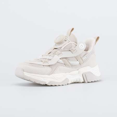 Бежевые кроссовки для девочки выполнены в модном тренде на высокой подошве, которая создает ощущение устойчивой и массивной обуви, при этом сохраняя анатомические свойства.