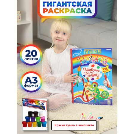 Набор творческий Bright Kids Гигантская раскраска и гуаш зверюшки