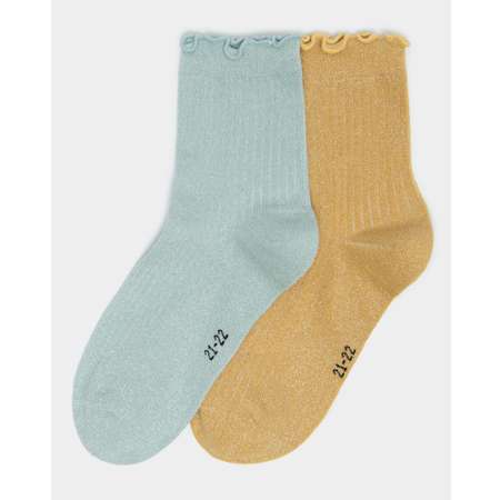 В комплекте Futurino две пары однотонных носков с люрексом для девочки - горчичные и мятные.