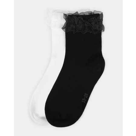 В комплекте Futurino две пары однотонных носков для девочки с фатиновыми оборками - белые и чёрные.