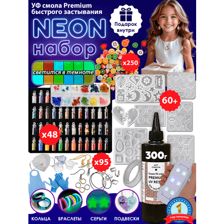 Готовое украшение своими руками можно собрать, используя фурнитуру для кулона и сережек. Для вашего удобства мы не забыли положить перчатки, респиратор, стаканчики, шпатели и подробная инструкция. Полный состав указан на изображении товара. Большой набор продается сразу в подарочной упаковке.