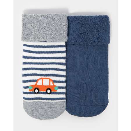 В комплекте Baby Gо две пары махровых носков для мальчика - однотонные синие и в полоску.
