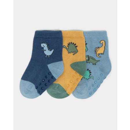 В комплекте Baby Gо три пары носков для мальчика, декорированные принтом с динозавриками.