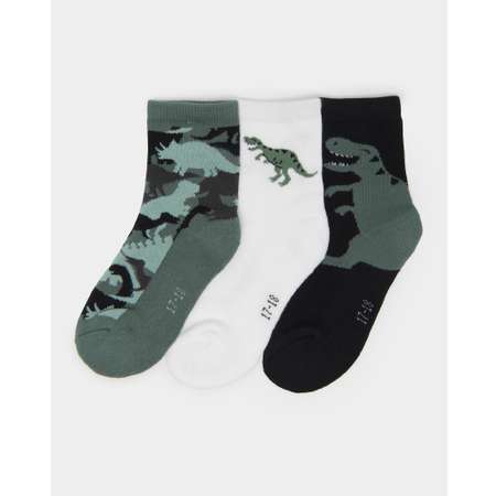 В комплекте Futurino три пары махровых носков для мальчика, декорированных принтом с динозаврами.