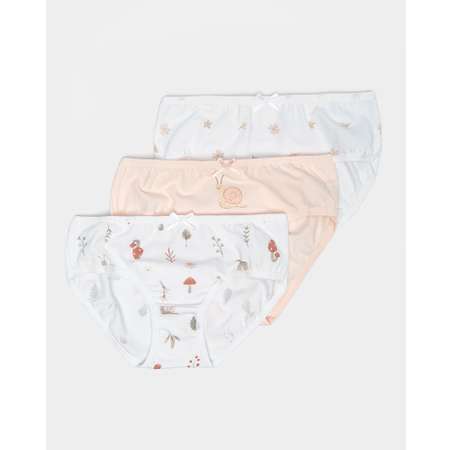 В комплекте Day and Night три модели трусов для девочки - белые и бежевые. Декорированы бантиком и разноцветным принтом.