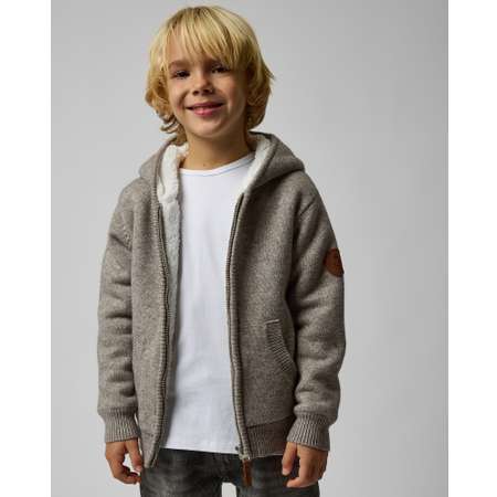 Утеплённая вязаная толстовка для мальчика Futurino серого цвета. Декорирована нашивкой.