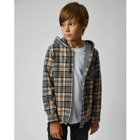 Клетчатая утеплённая рубашка для мальчика Futurino с трикотажным капюшоном.