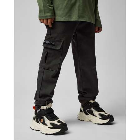 Утеплённые брюки-джоггеры для мальчика Futurino тёмно-серого цвета, с накладным карманом.