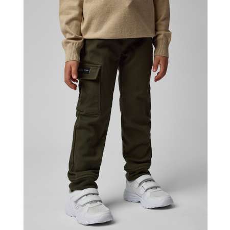 Утеплённые брюки-джоггеры для мальчика Futurino цвета хаки, с накладным карманом.