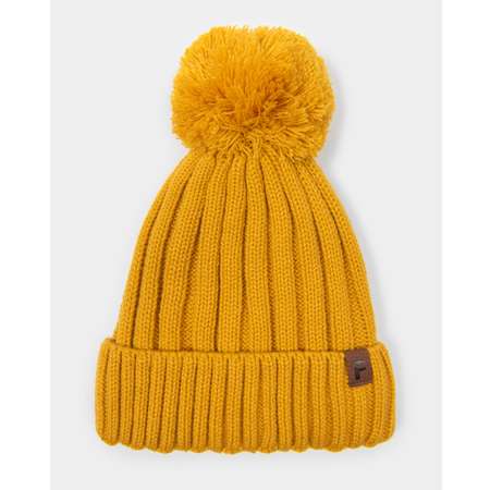 Шапка для мальчика Futurino горчичного цвета, с помпоном и нашивкой.