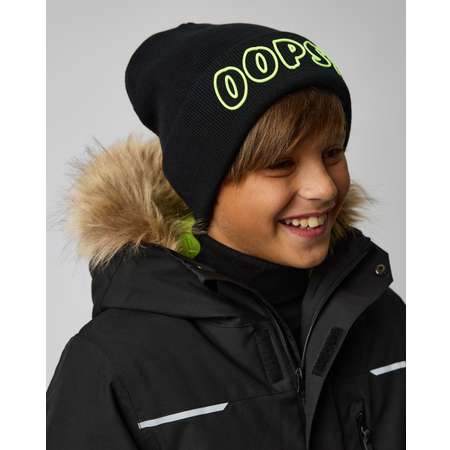 Чёрная шапка для мальчика Futurino с яркой надписью "oops!".