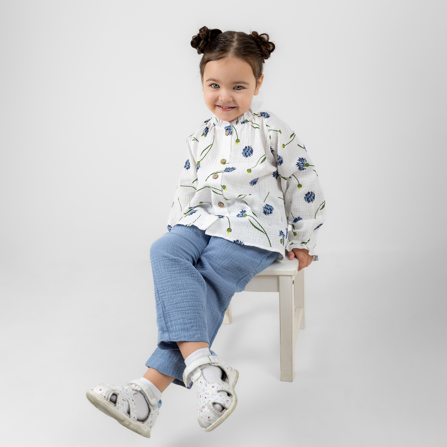 А вы подготовились к лету так, как подготовились мы? Компания LEO выпустила летнюю муслиновую коллекцию детской одежды. Каждый сможет выбрать себе наряд по душе. Блузка из муслина свободного кроя - легкая, невесомая, она точно понравится вашей девочке. Просторный фасон, рюша по рукавам и горловине, застежка на пуговицы по передней части изделия. Рукава кофточки – длинные, ворот – округлый с рюшами. Хлопковая блузочка подойдет как повседневная, пляжная, праздничная, нарядная, домашняя. Отличный вариант для прогулок, поездок, праздников, школы, садика. Образ с такой стильной блузкой можно дополнить шортами, брюками, юбкой, штанами из муслина, брюками паллацо и другими видами одежды. Легкая детская блуза рубашка для девочек станет одним из любимых вещей гардероба вашего ребенка, малыша,Рубашка из муслина отлично подойдет для прогулок и похода в детский сад, будет прекрасным дополнением к образу для фотосессии. ВНИМАНИЕ!!! Все замеры изделия в карусели фото. Муслиновая одежда отличный вариант для прогулок, похода на пляж и игр на детской площадке. Одежда из муслина практична, не линяет, не садится, хорошо переносит стирку и не требует глажки. Его действительно не ощущаешь на теле, что еще нужно жарким и знойным летом? У нас большой выбор детской одежды из муслина. Вы сможете подобрать комплекты из муслина разных расцветок. Если вы не знаете каким подарком удивить ребенка, то данная модная блуза будет отличным вариантом для подарка дочке, племяннице, внучке. Детская одежда может быть красивой и удобной! LEO-лучше только мама!