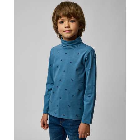 Синяя водолазка для мальчика Futurino, декорированная принтом с динозаврами.