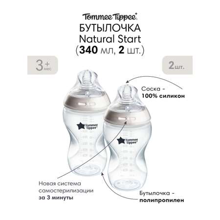 Бутылочка Tommee tippee для кормления Closer to nature 340 мл 3 мес + 2 шт.