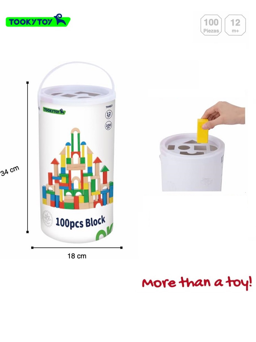 С этим набором можно самостоятельно построить целый город. В наборе 100 разнообразных деревянных кубиков, окрашенных в яркие цвета и имеющие разнообразные формы.