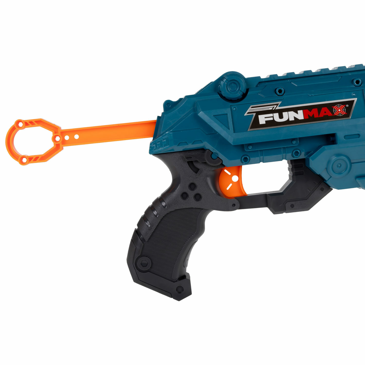 Отважный космический путешественник, который избавляет галактику от злобных пришельцев. Этот и много других сценариев игры может придумать ваш ребенок, если у него появится детский бластер с мягкими пулями Funmax от 1TOY. Пули сделаны из легкого губчатого материала EVA, похожего на поролон, и имеют наконечники из полимерного материала, которые придают пулям ускорение. Представленные игрушки для мальчиков подойдут как для одного ребенка, так и для компании друзей, чтобы устраивать фантастические битвы! Пистолеты бластеры подходят для игр в доме, на улице или на даче. А еще все бластеры для мальчиков имеют уникальный дизайн и привлекательную упаковку. Автомат с пульками — это не просто игрушка для забавы. Такое детское оружие для мальчиков может развить зрительно-моторную координацию, мелкую моторику и воображение. Кроме того, пистолет с пульками может улучшить логическое мышление и усидчивость в достижении поставленных целей. Бластер игрушки бывают как механические, так и на батарейках. Если говорить про пистолет игрушечный Фанмакс "М11", то пулемет с помповым механизмом, имеет 7 стволов и 8 EVA снарядов в комплекте. Предназначены такие игрушки для мальчика старше 8 лет. Подойдут игрушки для улицы и дома. Пистолет детский может стать отличным подарком мальчику на любой праздник!