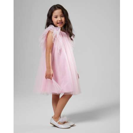 Праздничное платье для девочки Orsolini в розовом цвете с пышными рукавами из оборок. Декорировано блёстками.