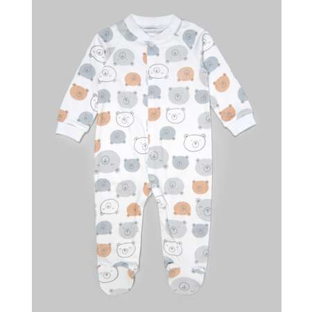 Белый комбинезон для мальчика Моя Горошинка, декорированный принтом с медвежатами.