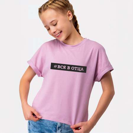 Я же папина дочка! В классной фиолетовой футболке с прикольной надписью Вся в отца можно отправиться на встречу с друзьями и поехать в путешествие летом. Модель для девочки и девочки-подростка выполнена из качественного хлопкового трикотажа с добавлением эластана. Мягкая гипоаллергенная ткань кулирная гладь приятна к телу и позволяет коже дышать. Лайкра в составе позволит сохранить первоначальные форму и размеры после многократных стирок. Прямой крой подарит свободную посадку, удобный цельнокроеный рукав декорирован стильным отворотом. Детская футболка из хлопка будет актуальна в любом сезоне, с ней легко создавать оригинальные образы. Отличный вариант для прогулок, занятий спортом и для дома. Трикотажная футболка с принтом идеальна для детей на летний сезон, а также подойдет для домашних и милых повседневных нарядов. Подростковая футболка может стать отличным подарком для любимой дочки и, заодно, для папы! Рост модели 150 см, параметры: объем груди 70, объем талии 60, объем бедер 73 см. На ней лиловая футболка размера 152.