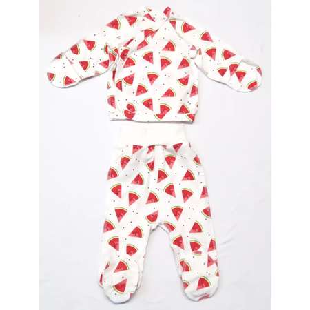 Комплект сшит из ткани Интерлок-натуральный хлопчатобумажный материал, по внешнему виду гладкий и шелковистый с обеих сторон. Распашонка на двух кнопках, ползунки на широкой и мягкой резинке, вашему Малышу будет удобно и комфортно.