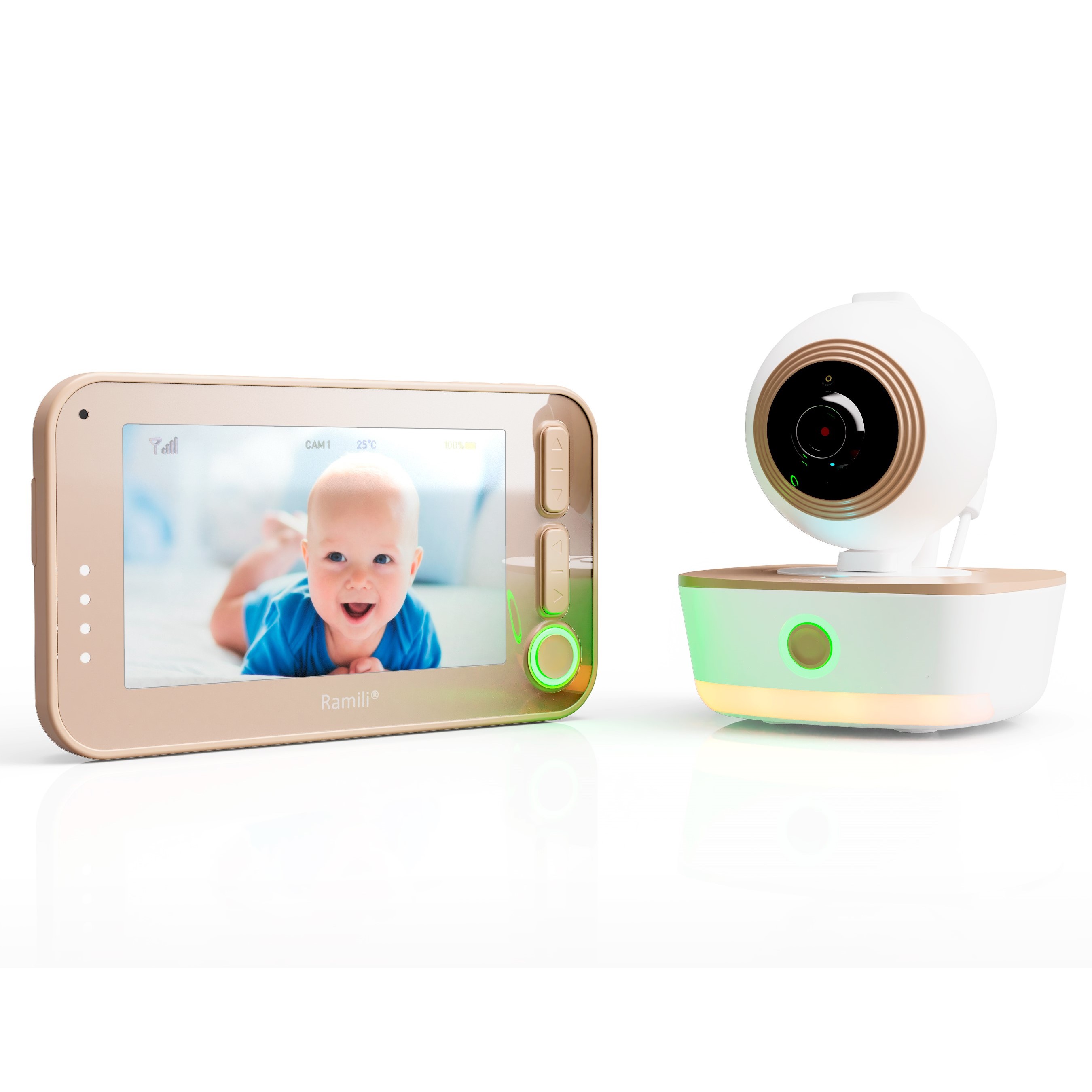 Оба блока видеоняни оснащены встроенными аккумуляторы повышенной ёмкости, благодаря чему обеспечивается длительная автономная работа камеры и монитора. С помощью специального крепления камеру можно закрепить на коляске, манеже или на кроватке (крепление Ramili Baby RC приобретается отдельно). В камеру встроен «умный» ночник, который может работать в режиме автоматического включения при срабатывании сигналов тревоги, и колыбельные мелодии. Можно проигрывать их малышу перед сном, управляя их воспроизведением на камере с родительского блока.