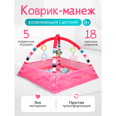Развивающий детский игровой коврик разработан специально для для физического, когнитивного и сенсорного развития ребёнка. Он прекрасно стимулирует у малышей развитие мелкой моторики, слуха, зрения и тактильного восприятия благодаря своей оригинальной конструкции, в которой использованы различные по фактуре и размеру элементы. Игрушки идут в комплекте. Поверхность коврика легко чистится, а при необходимости его можно даже постирать. Размер: 80х80х55 см, высота бортиков: 18 см. В коробке.