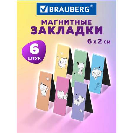 Закладки канцелярские Brauberg магнитные для книг в школу набор 6 штук