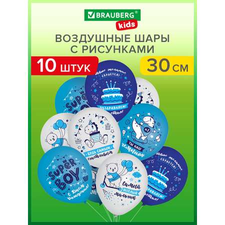 Шары воздушные Brauberg с днем рождения мальчик набор 10 штук фотозона