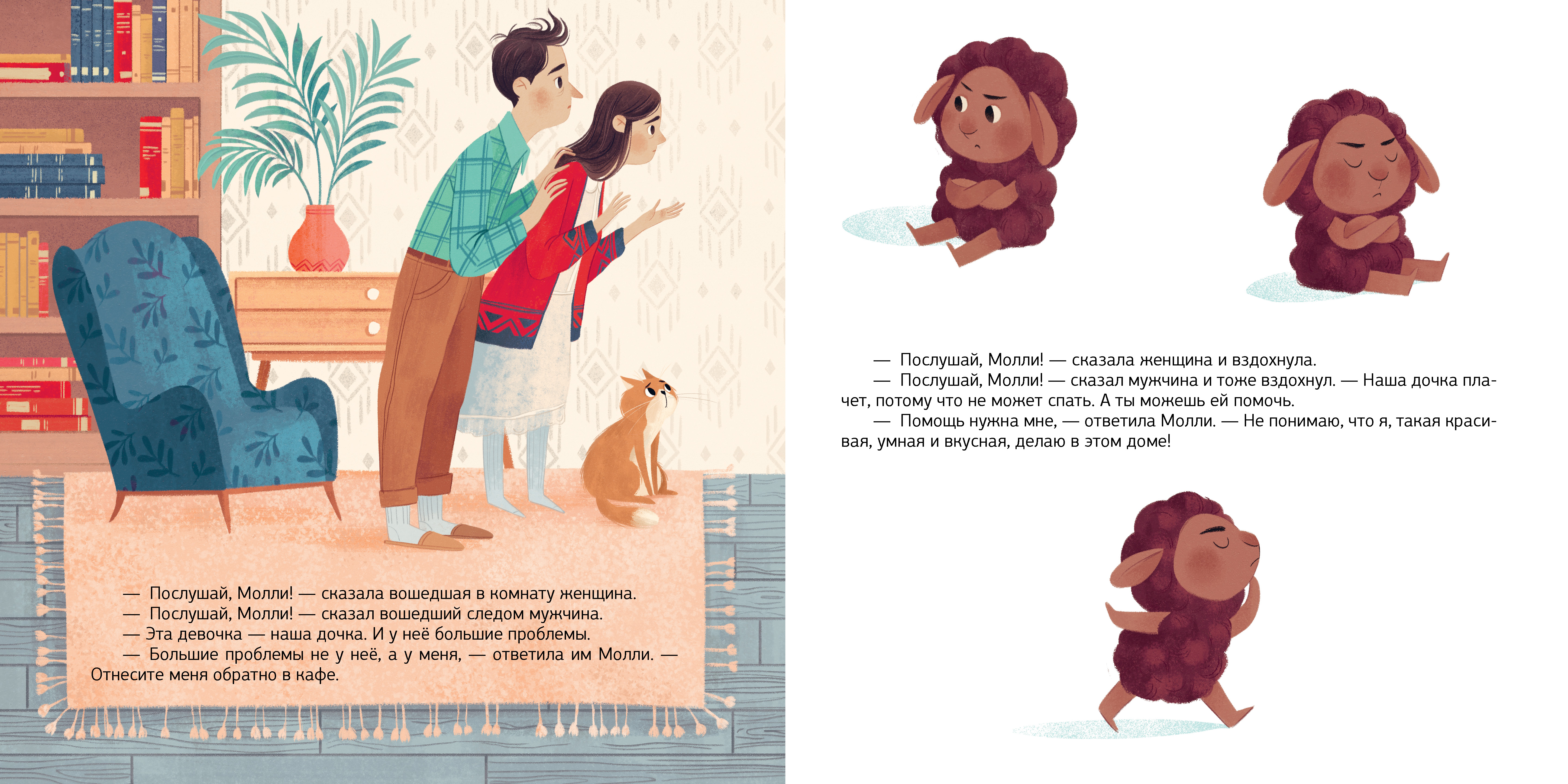 В один из морозных зимних дней размеренная жизнь Молли изменилась: в кафе пришла молодая пара и забрала ее! Уверенной овечке вдруг стало очень страшно — куда же ее везут? Где она теперь будет жить?
