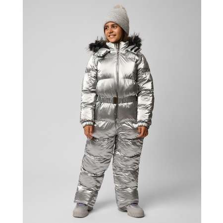 Зимний стёганый комбинезон для девочки Futurino серебристого цвета, со съёмным эластичным поясом.